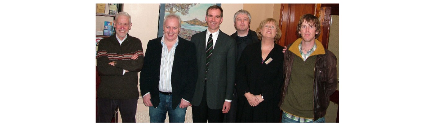 At the Irish launch of Colloquial Irish (from left to right): Dr. Séamas Ó Diréain, Josie Ó Cualáin, Thomas Ihde, Mícheál Mac Lochlainn, Máire Ní Neachtain, and Seosamh Ó Neachtain.